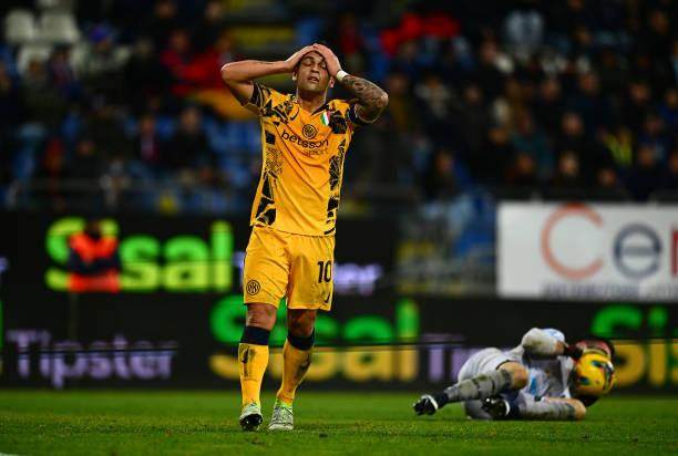 其实在进球之前,劳塔罗的表现并不算出色,传球失误颇多,上半场有一个近在咫尺的空门机会,结果一脚打了上天。所以当巴雷拉的助攻送到身前时,劳塔罗是用本能将球“挡”进球门的,仍然缺少一点决断力,不过好在终于是破荒了。尤其避免了成为了当天最失意的“劳塔罗”,在早些时候进行的比赛中,劳塔罗·巴伦蒂对蒙扎完成了绝杀,劳塔罗·马丁内斯算是不甘示弱,挽回了颜面。