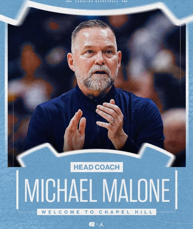 4月8日讯 北卡罗来纳大学男篮官方宣布,球队正式聘用迈克·马龙担任主教练。